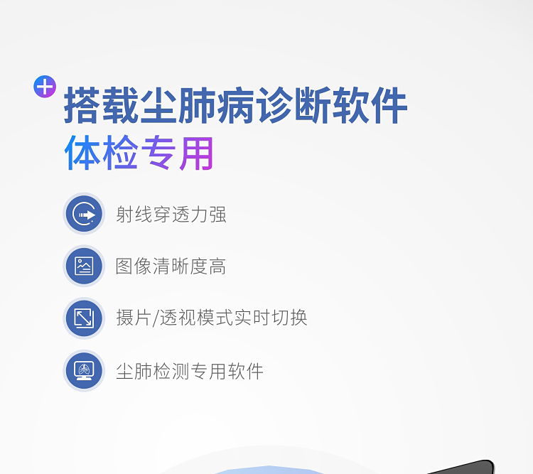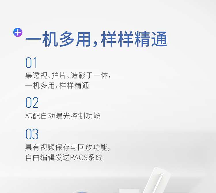 原厂优质影像链,搭载直接生长式碘化铯非晶硅平板,带来更加清晰锐利的图像效果。
