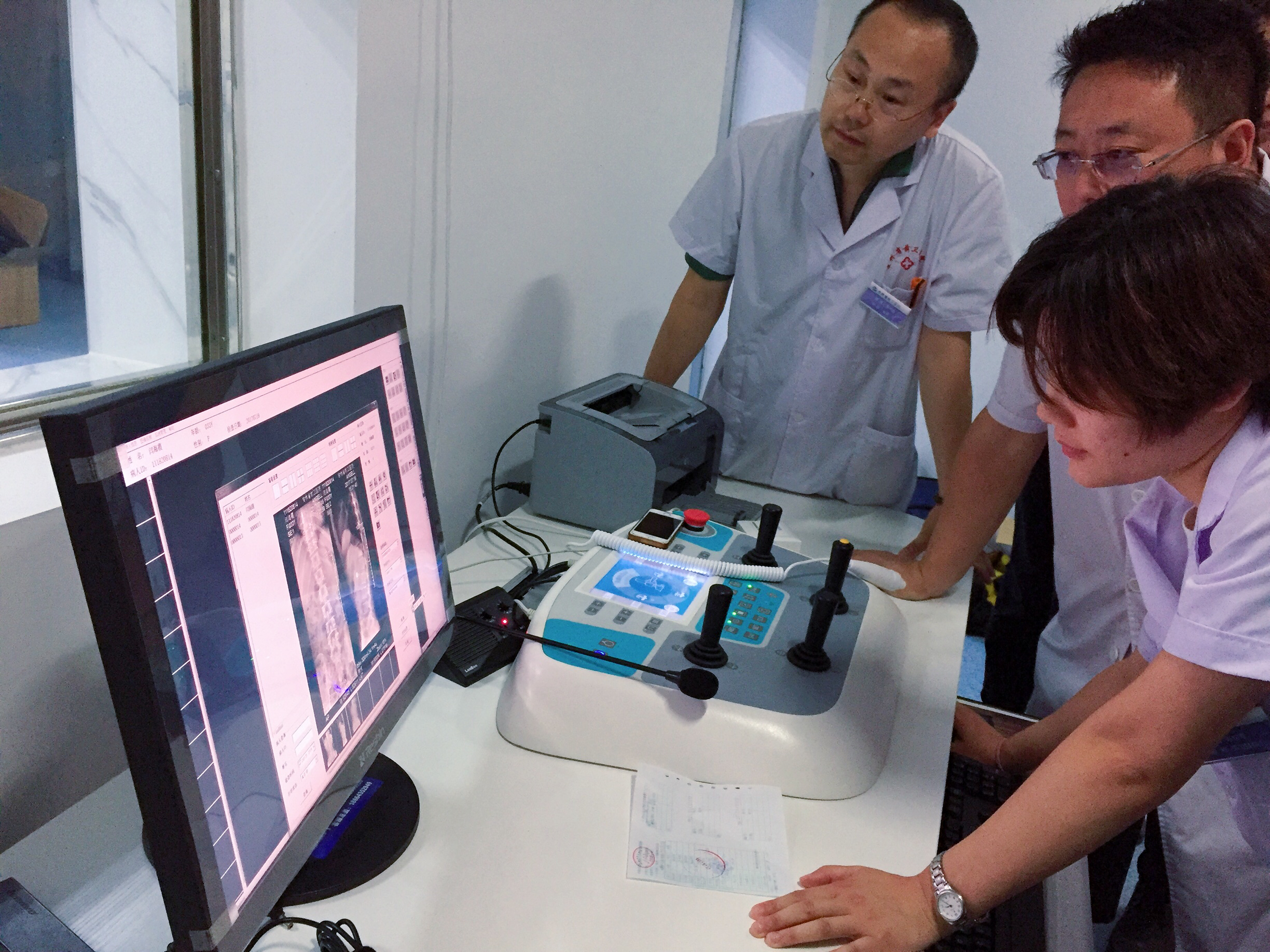 装机现场,放射科专家操作DTP570,并观察动态平板的拍片效果。专家表示,通过动态平板DR的检查,能够精准诊断患者的病灶部位。动态平板DR不仅为患者带来了诊断福音,同时也进一步增强了医院的医疗水平。
