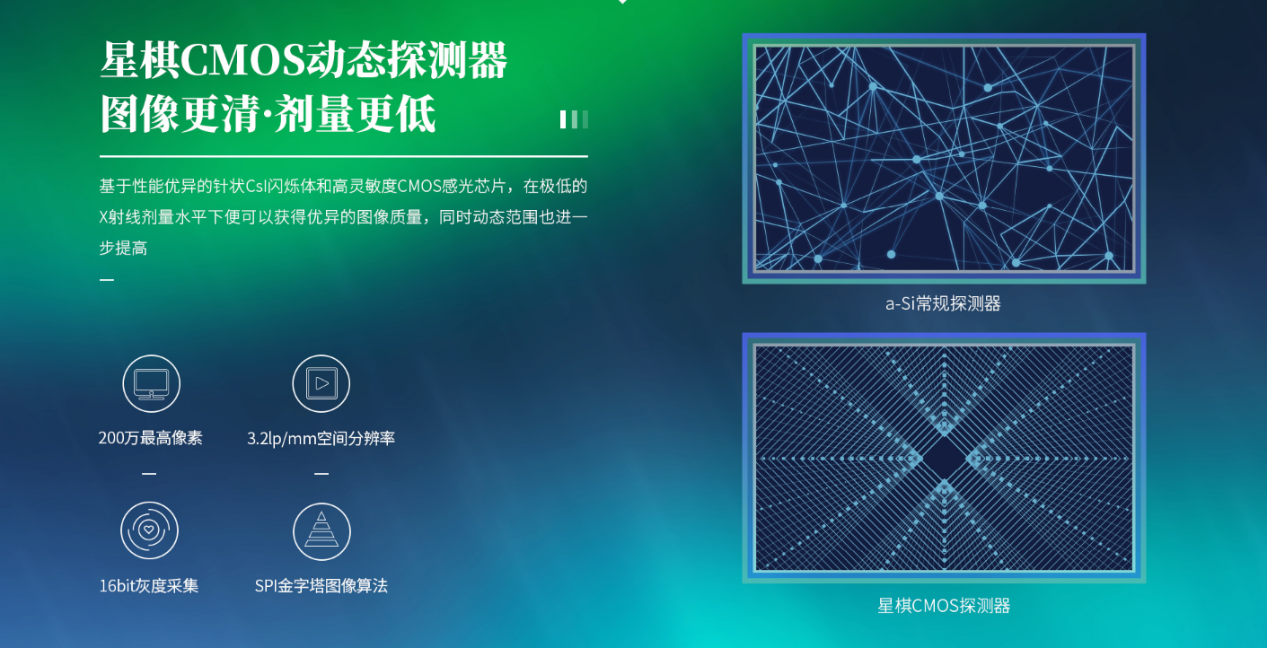 广东会科技悦画移动C臂X线摄影系统,采用了业内技术最尖端的CMOS探测器。基于性能优异的针状CSI闪烁体涂层和高灵敏度的CMOS感光芯片,悦画可以实现在超低X线剂量条件下实现高清晰影像成像,相较于一般的影增移动C臂和平板C臂,动态范围更高,影像的层次感和对比度更好。