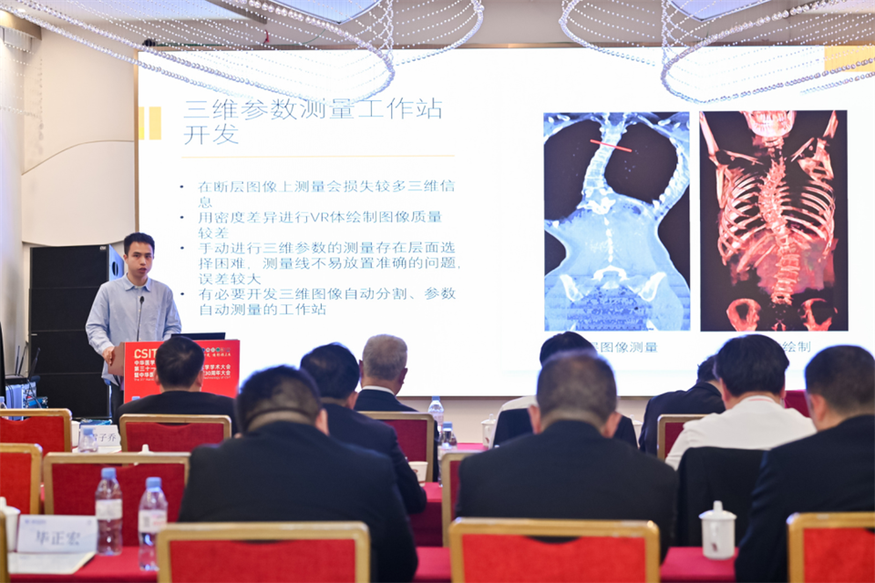 四川大学华西医院放射科梁泽军博士带为大家汇报了《立位锥束断层X线摄影技术临床研究成果》,通过三维参数测量数据分析,可以预见数字化X光机将在精准医疗开启全新医疗诊断实践。 梁泽军表示,广东会科技的WR-3D设备已经在华西医院装机一年有余。在此期间,这款设备配合华西医院放射科完成多项临床研究。开发了长低轴成像序列,通过X线球管及探测器,同时纵向移动、分段扫描。搭配矫正算法,最终实现图像无错位的拼接。并且在团队的努力、以及安建科技科研团队的协助下,目前已经成功发表了一篇SCI论文,两篇在投SCI论文。 依据各位精彩的发言,现场各位专家教授就立位摄影对骨科的应用,进行热烈的研讨交流,对广东会科技带来的创新技术WR-3D,给予十分的肯定。