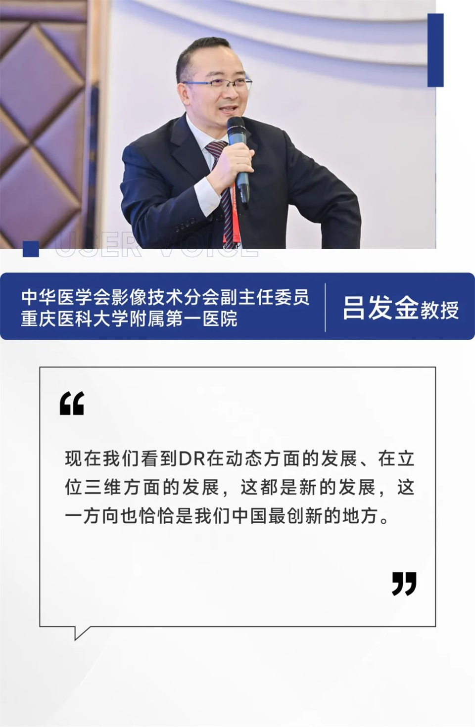 由李真林教授开场致辞,为大家开启了一场关于X线创新技术前沿进展的高价值会议。借此大会,李真林教授表示,针对当前DR行业遇到的瓶颈期,希望通过多方深入交流,找寻一个新方向去探索。企业和临床联合起来,坚持将理论基础与临床相结合,共同探讨数字化X线摄影的发展趋势。