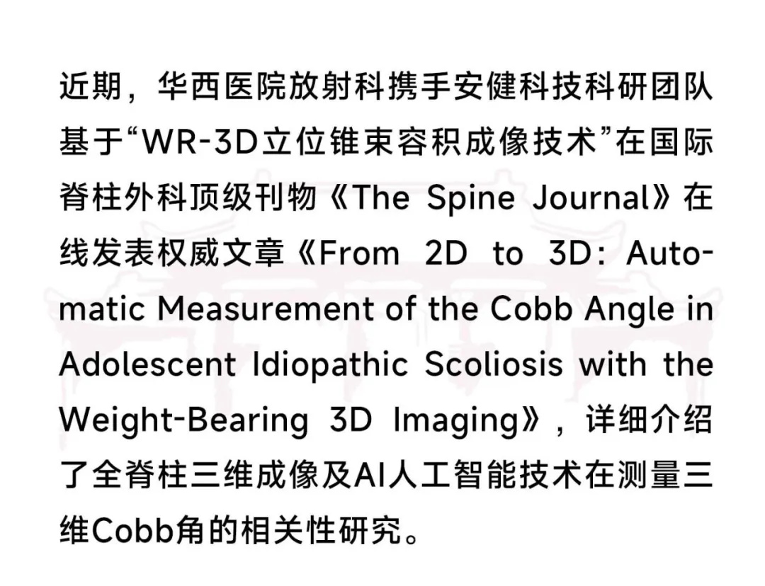 登陆脊柱全球顶刊| 广东会科技与四川大学华西医院立位锥束CT研究成果登陆脊柱全球顶刊《The Spine Journal》