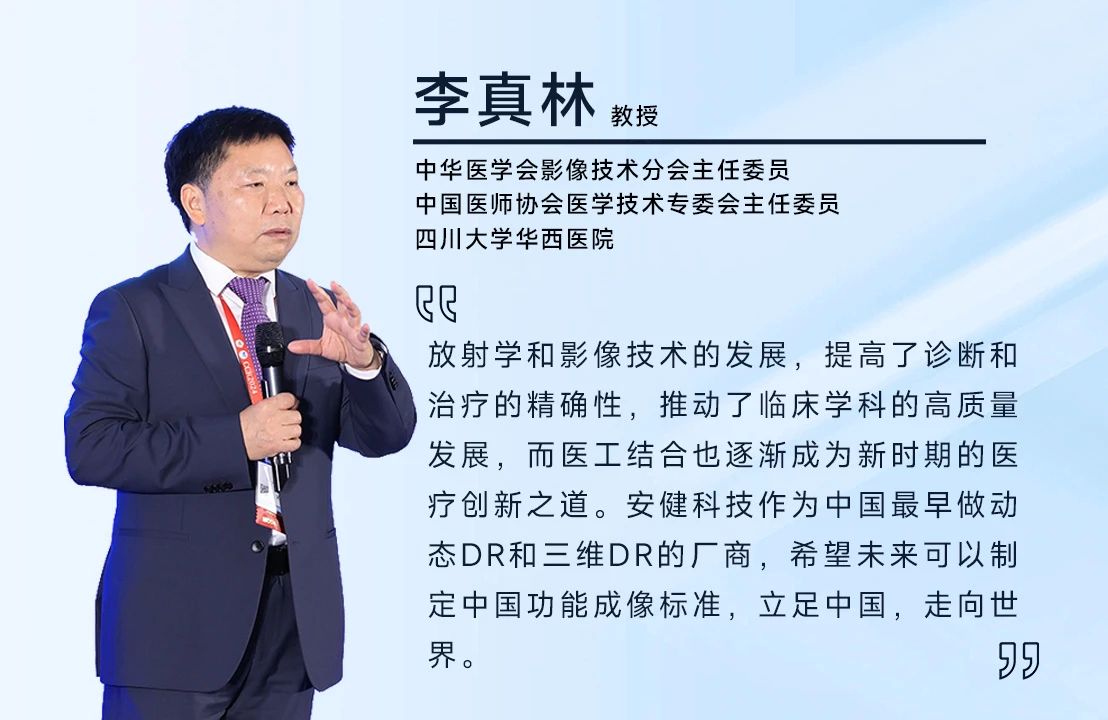 本次论坛涵盖骨科、康复科、影像诊断、影像技术等多个学科专家,以《动态赋能 融合成像》为主题,展开立位锥束断层与功能成像X线摄影技术的创新应用的深度交流。中华医学会影像技术分会、中国医师协会医学技术专委会主任委员、四川大学华西医院李真林教授;中华医学会影像技术分会候任主任委员、山东第一医科大学附属省立医院马新武教授;中华医学会放射学分会骨关节学组组长、北京大学第三医院袁慧书教授;云南大学附属医院放射科主任苏伟教授;原云南省放射学会委员及神经影像学组组长、云南省滇东北中心医院放射科主任孙学进教授;北京中西医结合学会医学影像专委会副主任委员、首都医科大学附属北京中医医院放射科主任霍建伟教授;贵阳市医学会放射分会原主任委员、贵阳市第二人民医院李德炯教授;陕西省放射医师协会常委、空军军医大学唐都医院影像科主任王文教授;庆阳市康复医院影像中心主任常伟东教授;庆阳市第一人民医院放射科副主任苏小军教授;西安医学院医疗二系医学影像教研室主任、西安医学院第二附属医院罗春海教授;湖北省医学会放射学分会副主任委员、湖北省人民医院查云飞教授;天津大学天津医院放射一科科主任兼支部书记郭林教授;广东省基层医药学会放射专委会主任委员、广州市妇女儿童医疗中心刘鸿圣教授;广东省防痨协会影像专委会副主任委员、中山大学附属第三医院覃杰教授;广东省放射质量控制中心副主任、南方医科大学南方医院陈卫国教授;宜春市医学会放射专业委员会常务委员兼秘书长、宜春市中医院张德龙教授;宜春市第二人民医院放射科主任张宇教授;以及出席本次大会的广东会科技嘉宾代表们,包括:广东会科技董事长杜碧先生、广东会科技副董事长张一飞先生、广东会科技CEO姜树辉先生、广东会科技联席总经理兼研发总监郑晗博士、广东会科技西南大区总经理林雄伟先生、广东会科技陕甘宁市场总经理李建波先生、广东会科技北一区总经理周召余先生、广东会科技北二区总经理袁锐先生、广东会科技北京市总经理李晓东先生、广东会科技上海市总经理刘玉清先生、广东会科技销售管理部总监王敏先生、广东会科技市场部总监郭亮先生、广东会科技产品规划部总监杜静先生、广东会科技移动DR高级产品经理彭鑫先生等。本次论坛,由广东会科技董事长杜碧先生致欢迎词。并邀请到中华医学会影像技术分会主任委员、中国医师协会医学技术专委会主任委员、四川大学华西医院李真林教授,中华医学会影像技术分会候任主任委员、山东第一医科大学附属省立医院马新武教授致论坛开幕词。