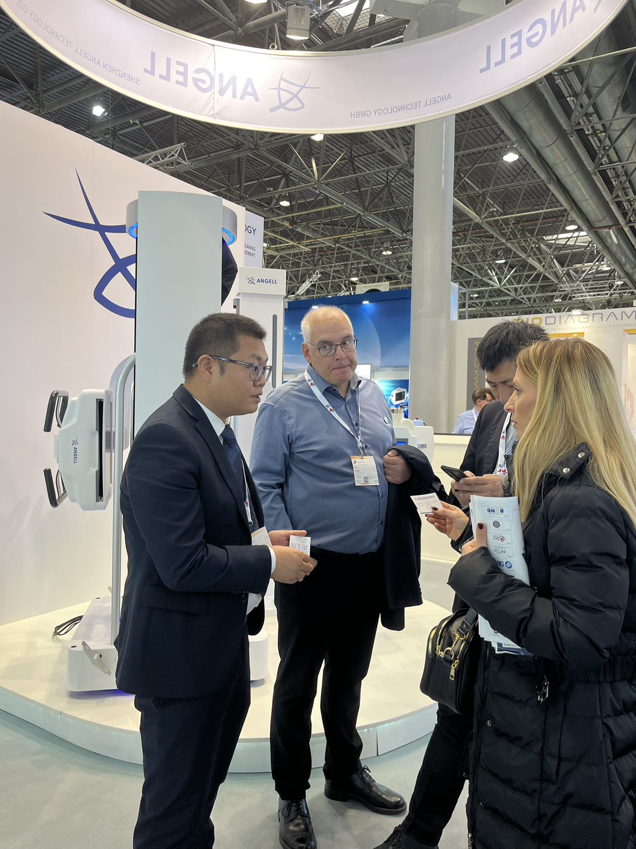 在今年的MEDICA上,广东会科技展示了其先进的WR-3D立体锥束断层X线摄影系统,这是行业首个2D+3D一站式骨关节立位全身成像X线摄影检查方案,受到了海外专业人士的高度评价和认可。它打破传统CT、MRI仰卧位扫描方式,创新实现负重位下全脊柱、全下肢三维扫描与重建,反映自然承重状态下的骨骼状态真实信息。不仅如此广东会科技独有的AI测量解决方案,支持全身骨关节AI自动测量,提供全身 50+骨关节的角度、距离AI自动测量,一键生成结构化报告,赋能更加精准的骨科临床诊疗。展会期间,WR-3D设备吸引了大量观众驻足并详细了解和体验。